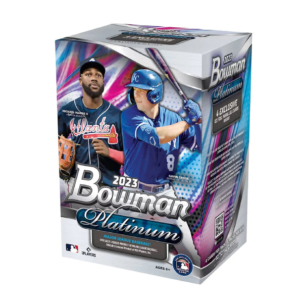 - 8 Packs per Box - 4 Cards per Pack - 4 Exclusive Ice Foil Parallels per Box! The 2023 Bowman Platinum Baseball Factory Sealed Value Box is back with another year of treasurable prospects and coveted rookies across a whole new of stunning foil...